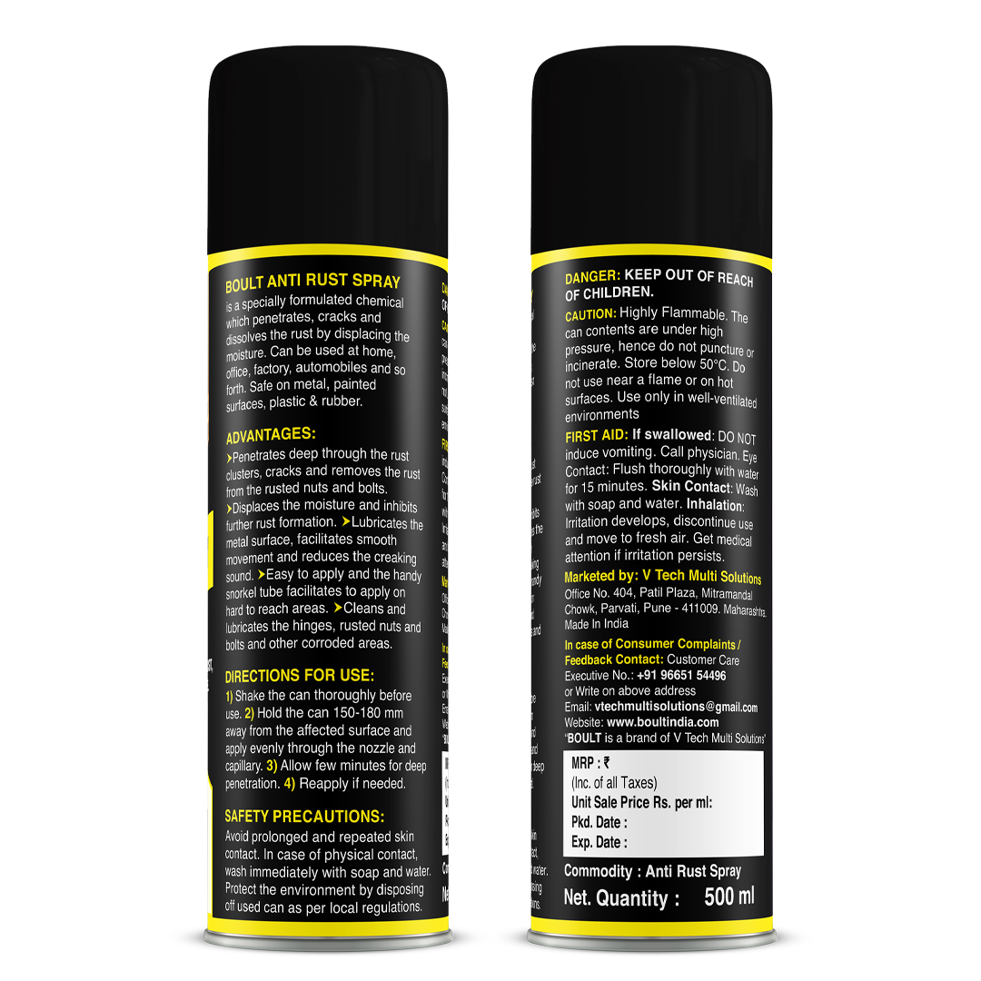 Boult Anti Rust Spray is a specially formulated chemical which penetrates,